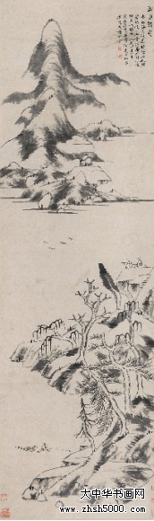 姜实节(1647~1709),字学在,号鹤涧,山东莱阳人,姜埰子。姜实节像有孝行,笃友谊。明礼科给事中,入清隐遁,不入城市,布衣终老。晚岁于虎邱筑谏草楼,吴人谥之曰孝正。善书,笔势如篆籀。画山水法云林(倪瓒),峯峦简淡,林木萧竦,备清旷之致。落笔不甚谨严,处处有荒率态,盖荒率本是其所长,亦是其所短也。工诗,有焚余草,卒年六十三。《苏州府志、国[清]朝画徵续录、桐阴论画、国[清]朝别裁诗传、朴庵文集、樊榭山房集、清朝书画家笔录》。